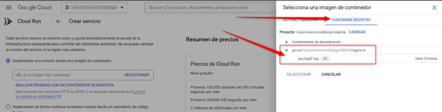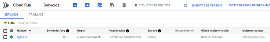 - Despliegue en Cloud Run: Ve a Cloud Run en la consola de Google Cloud para desplegar tu contenedor.