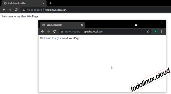 [root@todolinux conf.d]# echo «Welcome to my second WebPage» > /var/www/html/apache.local.lan/index.html